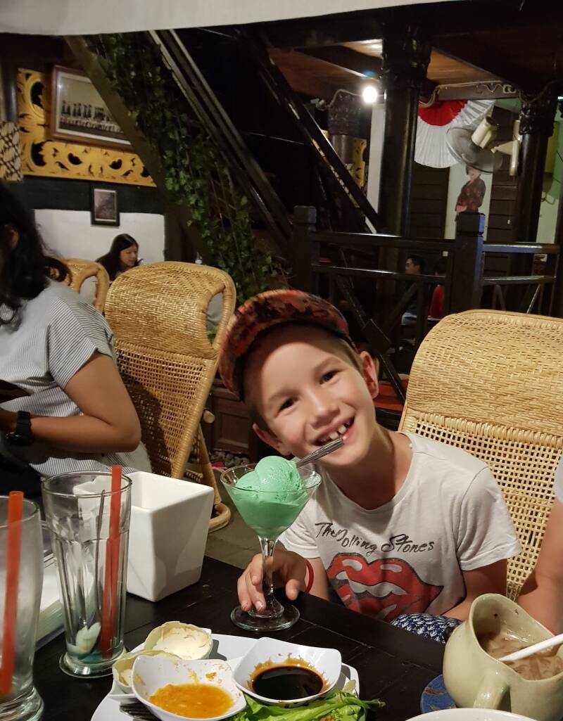 En tot slot gegeten in het meest bizarre restaurant ever. Het is een man die als vrouw is gekleed. Het interieur is een soort kerstmis met paarden naast het toilet en heerlijk gegeten.