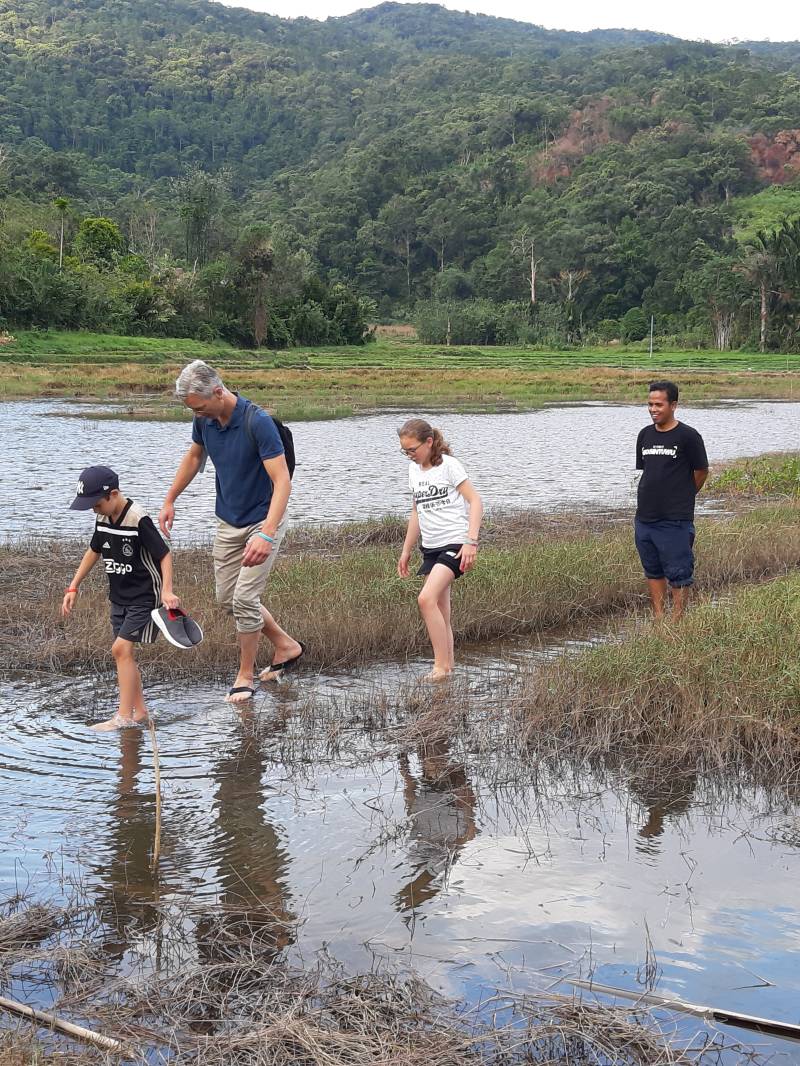 Bij de gids thuis eerst onze lunch, klaar gemaakt door lian, opeten. De gids is de enige u het dorp die engels praat
